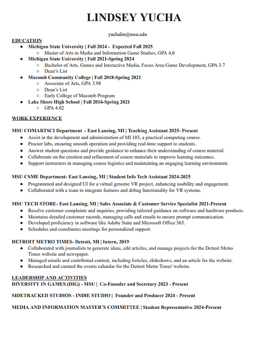 Programming Languages: Proficient in C#, C++, JavaScript, Python, HTML, and CSS.